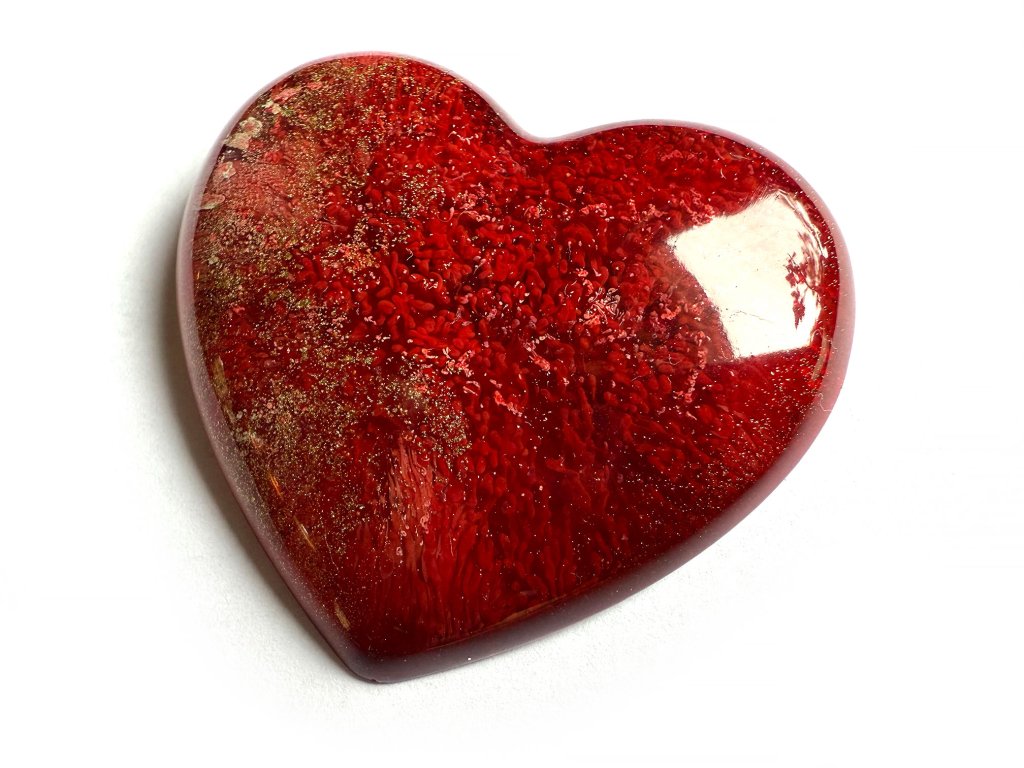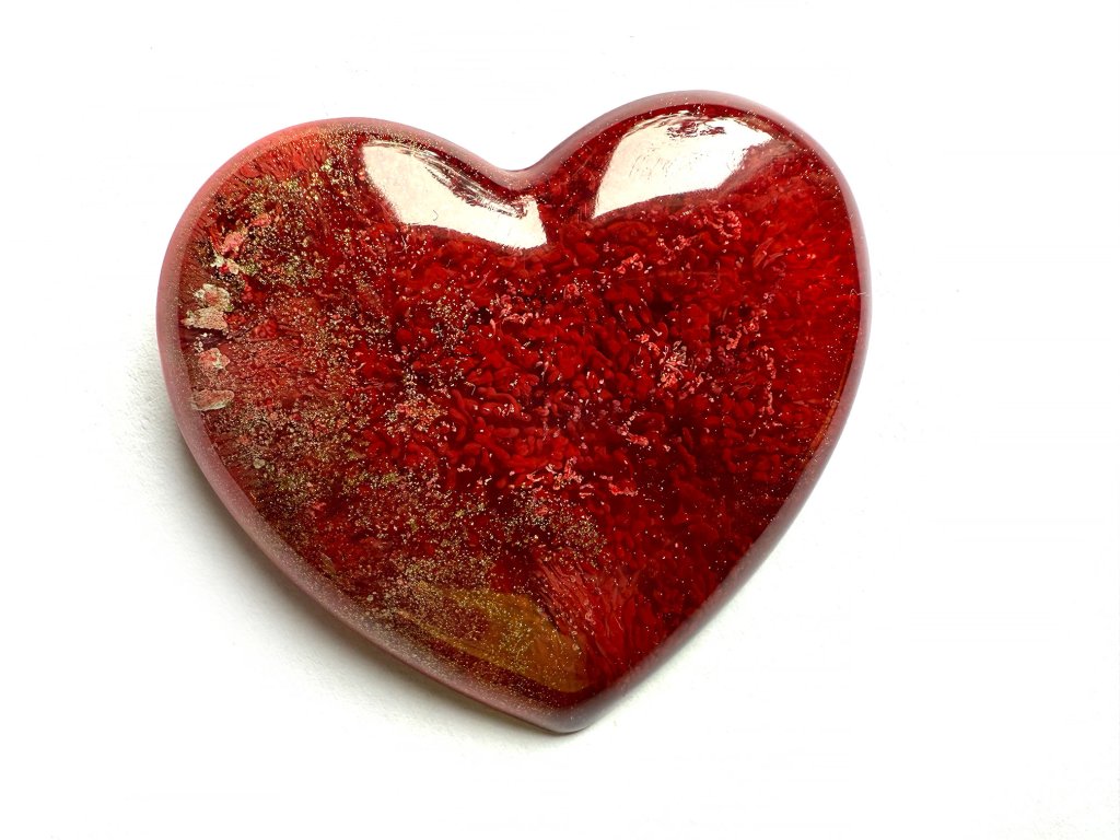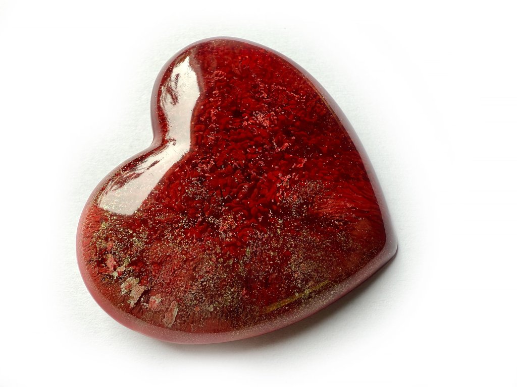 Brož z pryskyřice ve tvaru srdce s krásnými inkoustovými efekty.