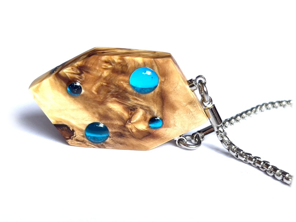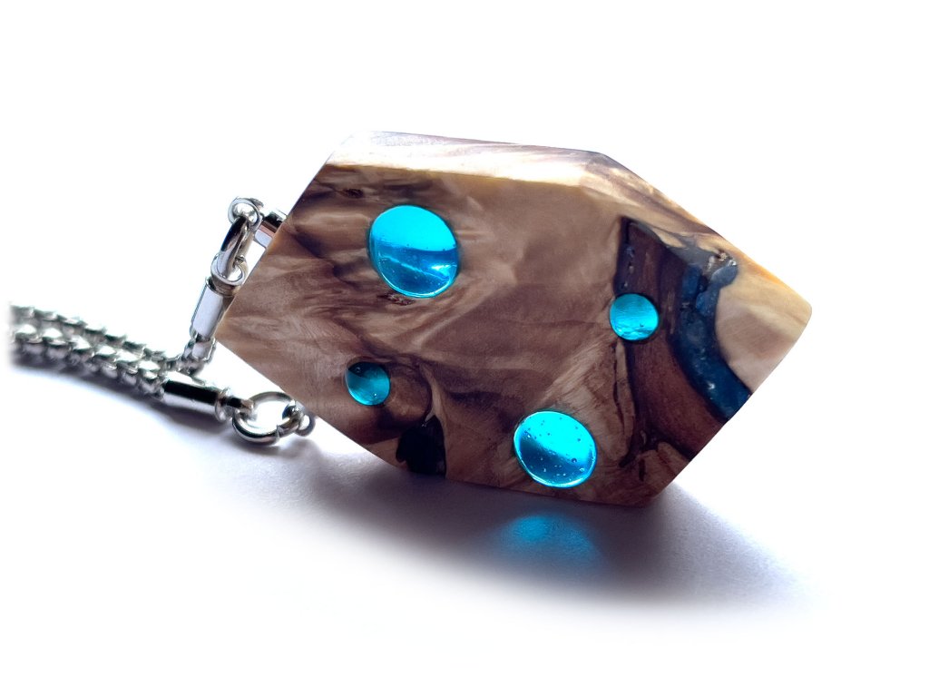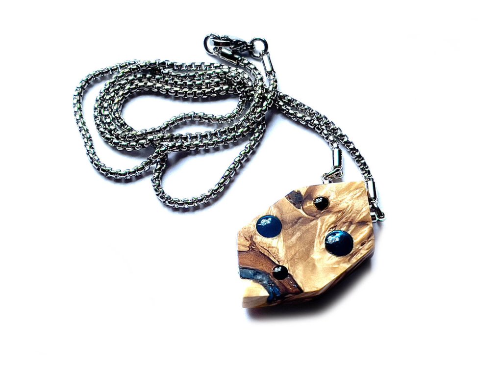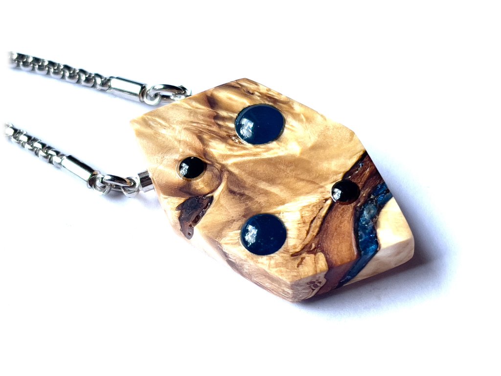 Náhrdelník z ručně broušeného stabilizovaného dřeva a pryskyřice.