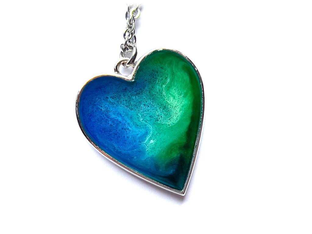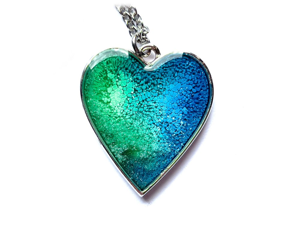 Náhrdelník se srdcem z pryskyřice s 3D efektem.