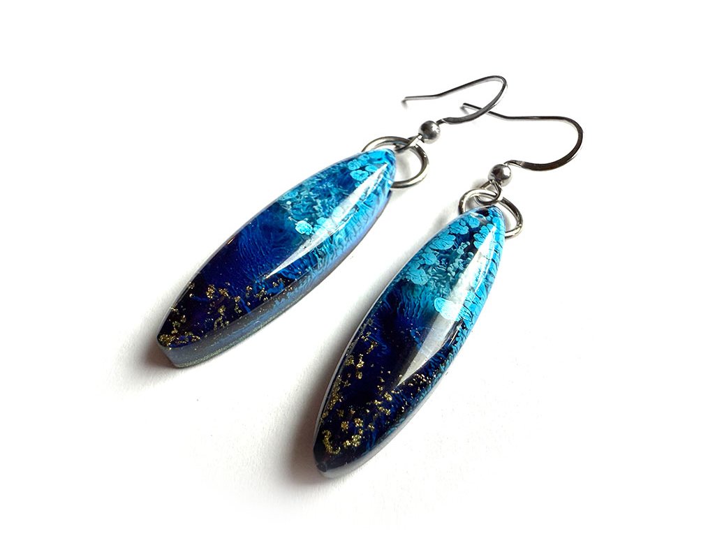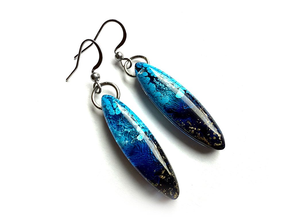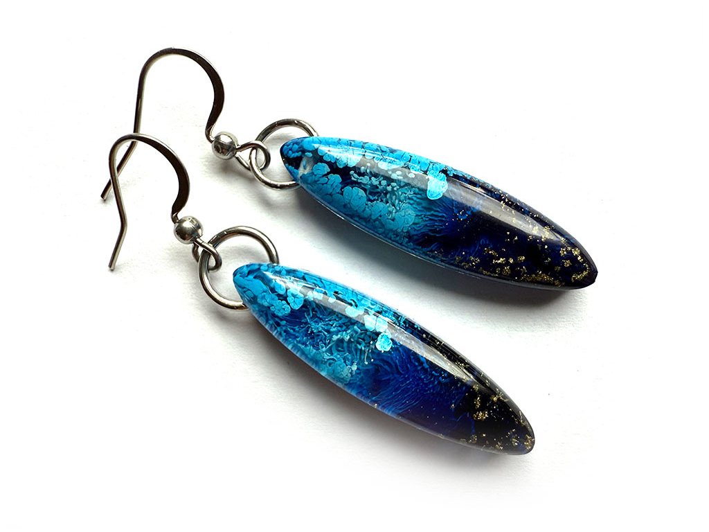 Lehounké náušnice z pryskyřice s krásnými inkoustovými efekty.