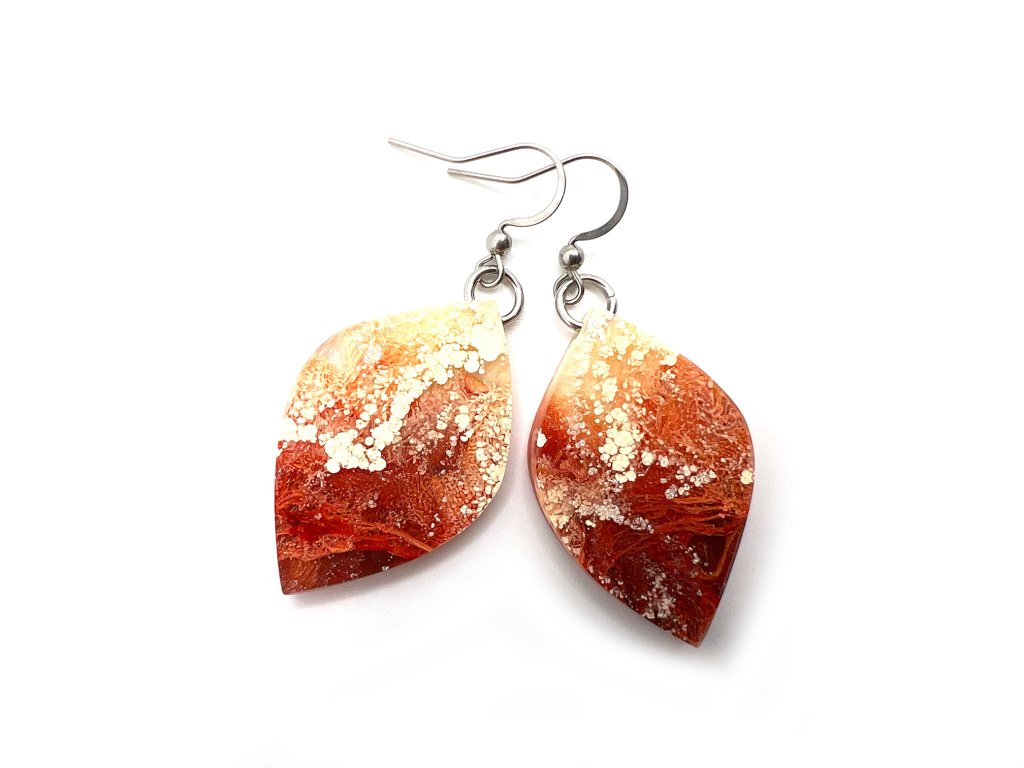 Náušnice z pryskyřice s tvarovými efekty ručně broušené a leštěné.