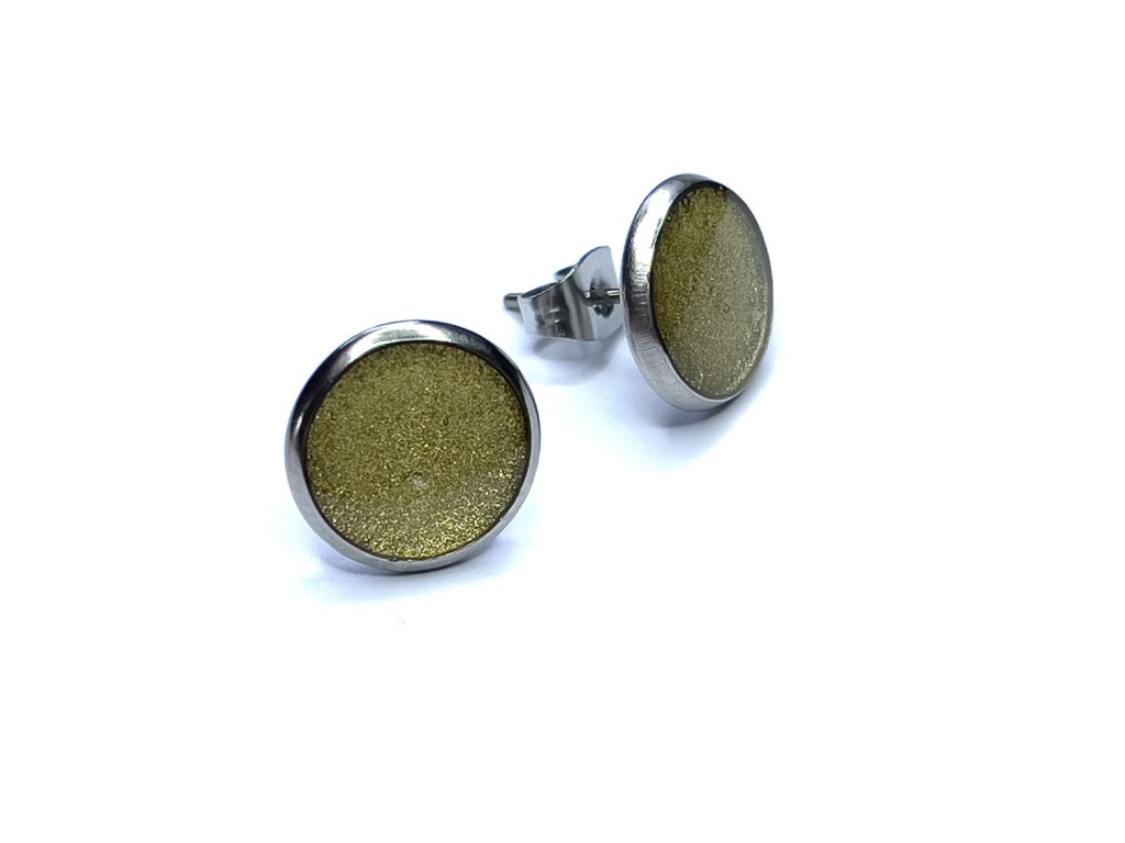 Puzetové náušnice z pryskyřice zlaté metalízové.