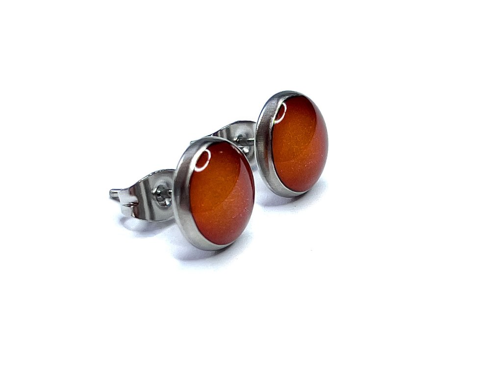 Puzetové náušnice z pryskyřice oranžové s lehkým třpytem.
