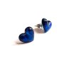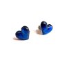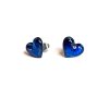 Puzetové náušnice z pryskyřice ve tvaru malého srdíčka v tmavě modré barvě s lehkým třpytem.