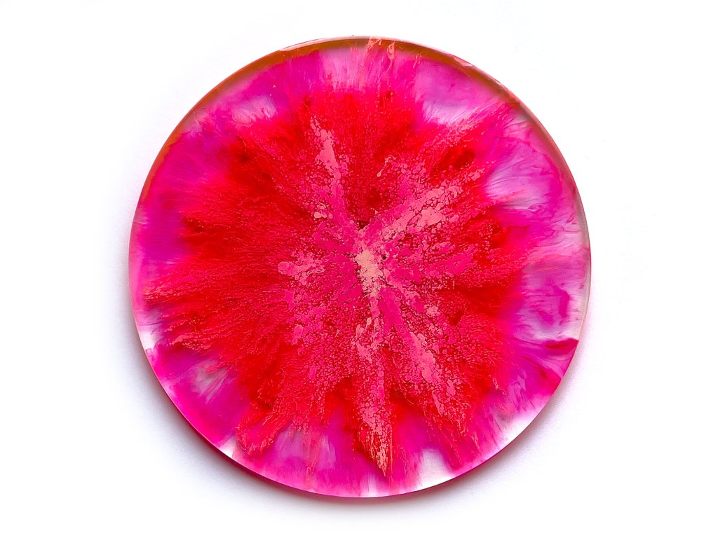 Podtácek pod hrneček z lité pryskyřice s růžovým tvarovým efektem.