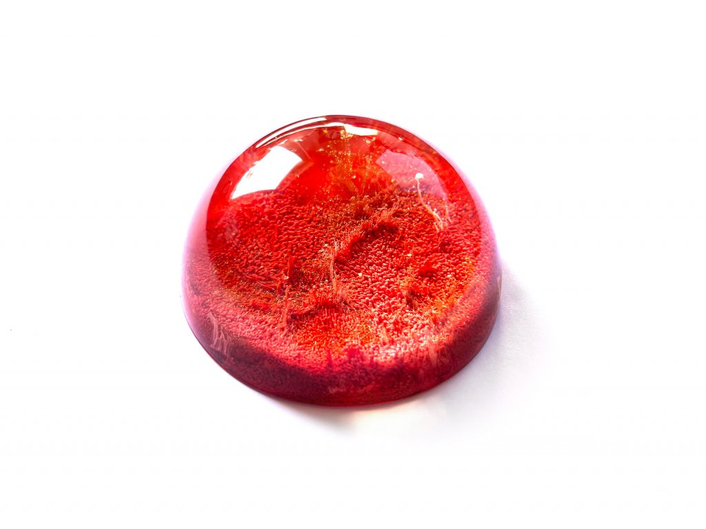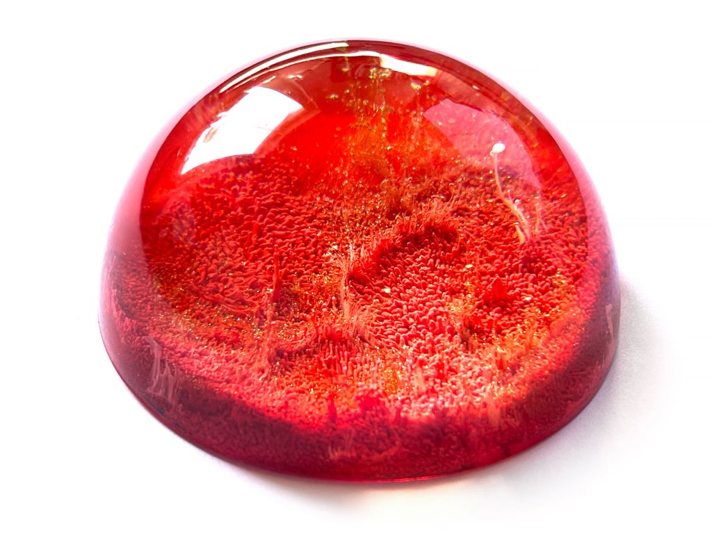 Těžítko z pryskyřice ve tvaru polokoule s tajemnými 3D efekty.